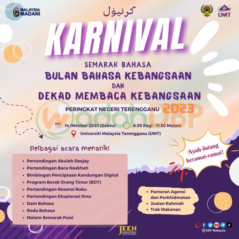 Aktiviti Karnival Semarak Bahasa Bulan Bahasa Kebangsaan dan Dekad Membaca Kebangsaan Peringkat Negeri Terengganu 2023 002334 20 October 2023 4 # DBK# DMK Karya ini adalah © Hak Cipta Terpelihara WadahDBP. Sebarang salinan tanpa kebenaran akan dikenakan tindakan undang-undang. How useful was this post? Click on a star to rate it! Submit Rating Average rating 0 / 5. Vote count: 0 No votes so far! Be the first to rate this post. Kongsi